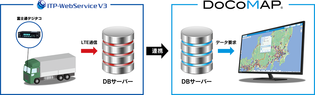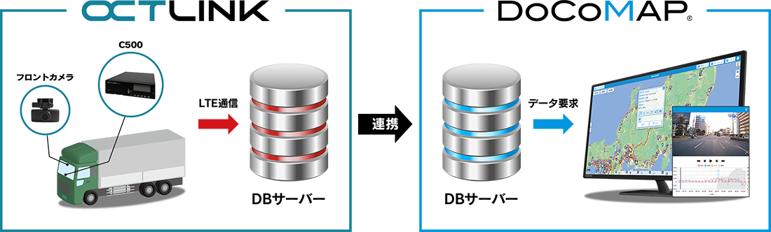 docomapPLUSは、DoCoMAPと連携することで、 車両の位置情報と連動した運行状況をリアルタイムでクラウドに記録・ 管理することを可能にするスマートフォン向けアプリケーション。 更に、OCTLINKと連携することで、PLUSアプリとOCTLINK本体のボタン操作が連動し、デジタコの入力補助装置としてご活用いただくことも可能になります。 入力いただいた内容をもとに自動で運行日報を作成することも可能です。