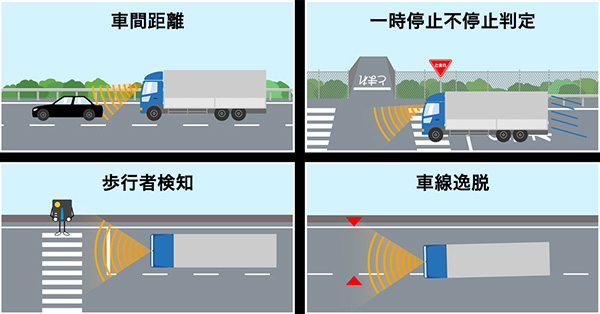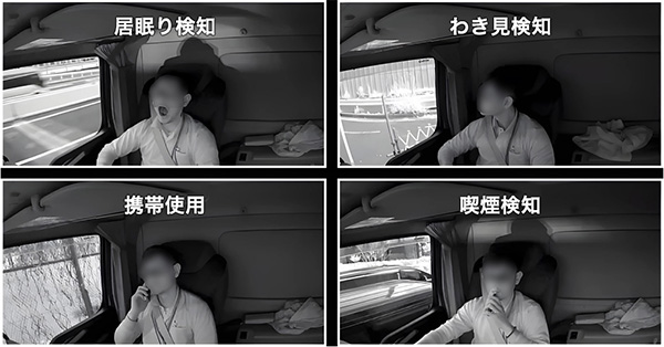 Communication type drive recorder with built-in GPS and AI image analysis engine, supporting 3 cameras. In addition to 5 hazardous behaviors including sudden acceleration and deceleration, the system can also get signals when backing up. Furthermore, using the ADAS function with AI image analysis, the system can be used for safe driving.