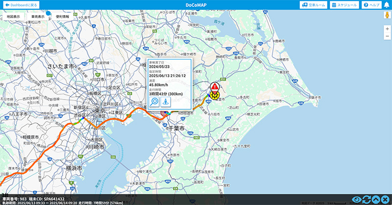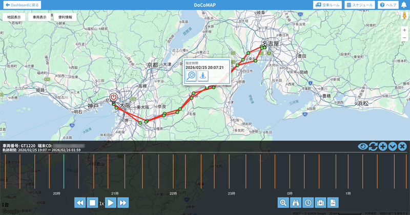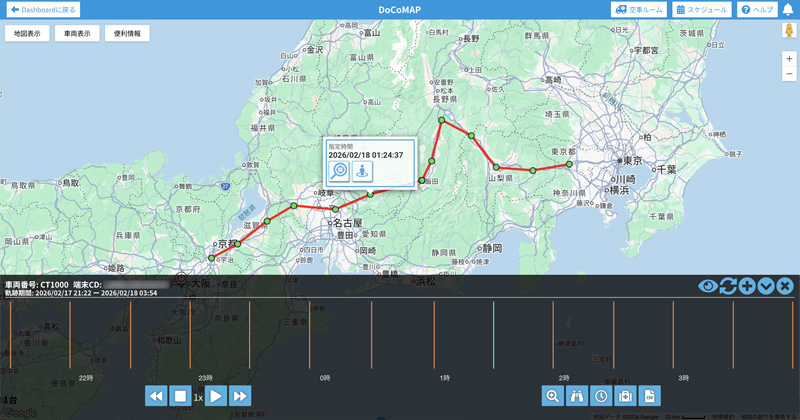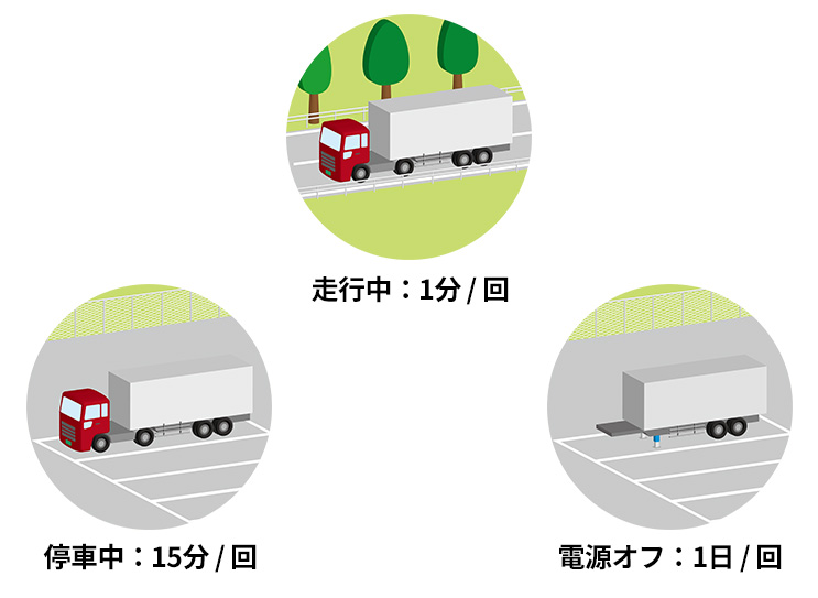 ※:電源供給した状態での走行中は1分に1回位置情報を取得しており、停車中は15分に1回の取得となる。電源供給がされてない場合は1 日に1回の取得となる。